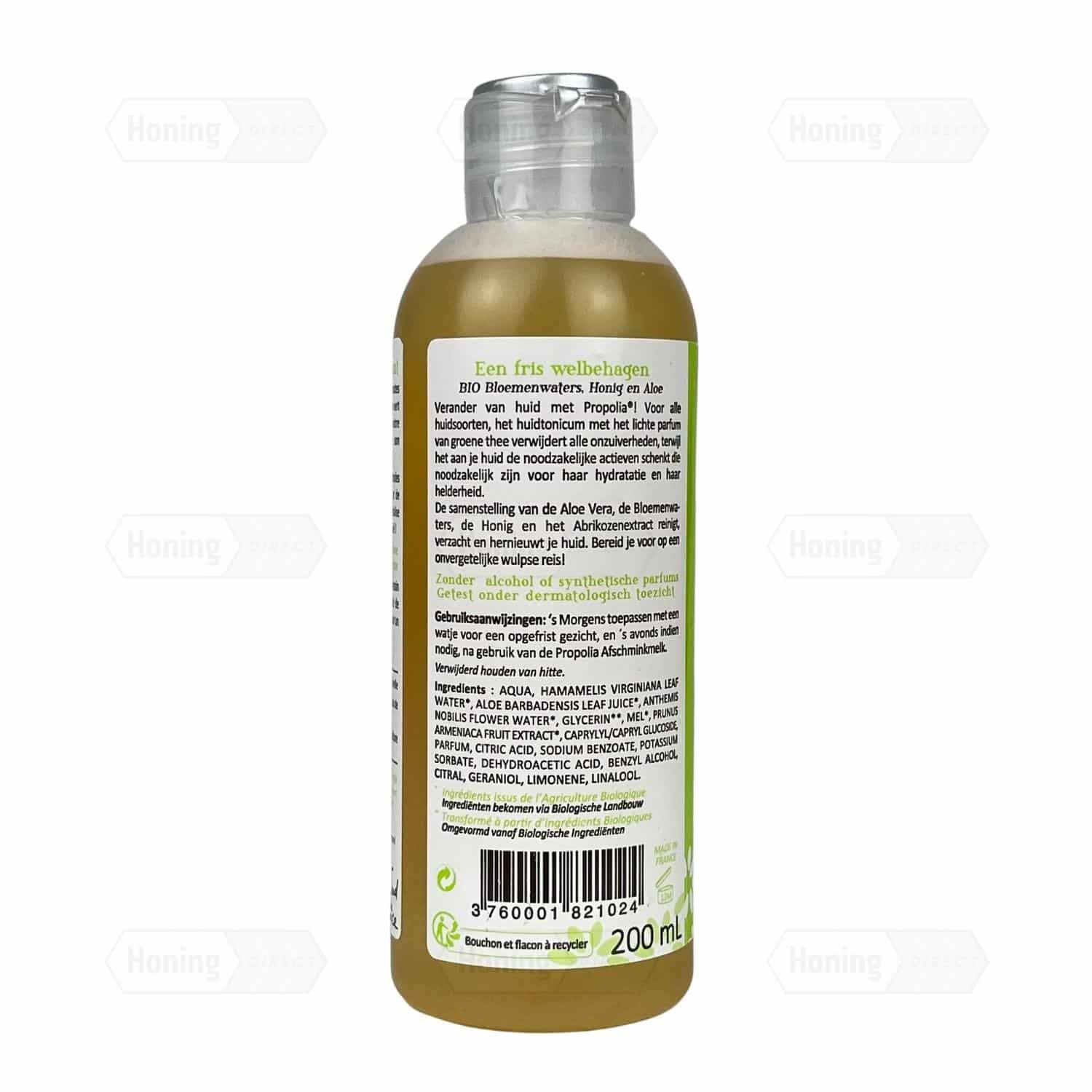Discover now the skin tonic based on aloe vera, honey and other natural ingredients. This refreshing tonic has a light green tea scent. The combination of aloe vera, witch hazel, chamomile flower water, honey and apricot extracts care for the skin. Use the skin tonic daily for glowing skin. The 200 mL bottle contains 99% natural ingredients, 99% of which come from organic farming. The tonic is carefully composed and subject to strict quality controls.