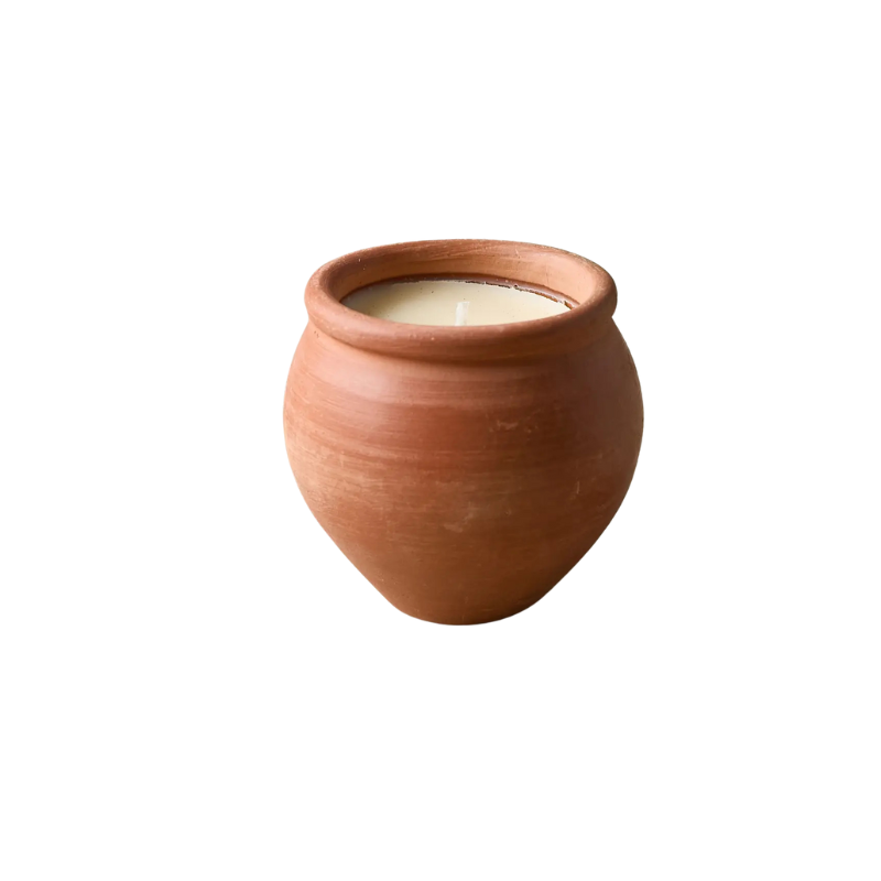 Onze Deepti-kaarsen brengen warmte en rust in huis of tuin – verpakt in een elegante, handgemaakte terracotta pot. Het ontwerp is geïnspireerd op traditionele Indiase vazen en maakt deze kaars niet alleen functioneel, maar ook een prachtige decoratie.