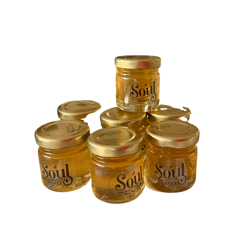 Mini potjes honing met houten lepeltje – een zoet cadeautje!
