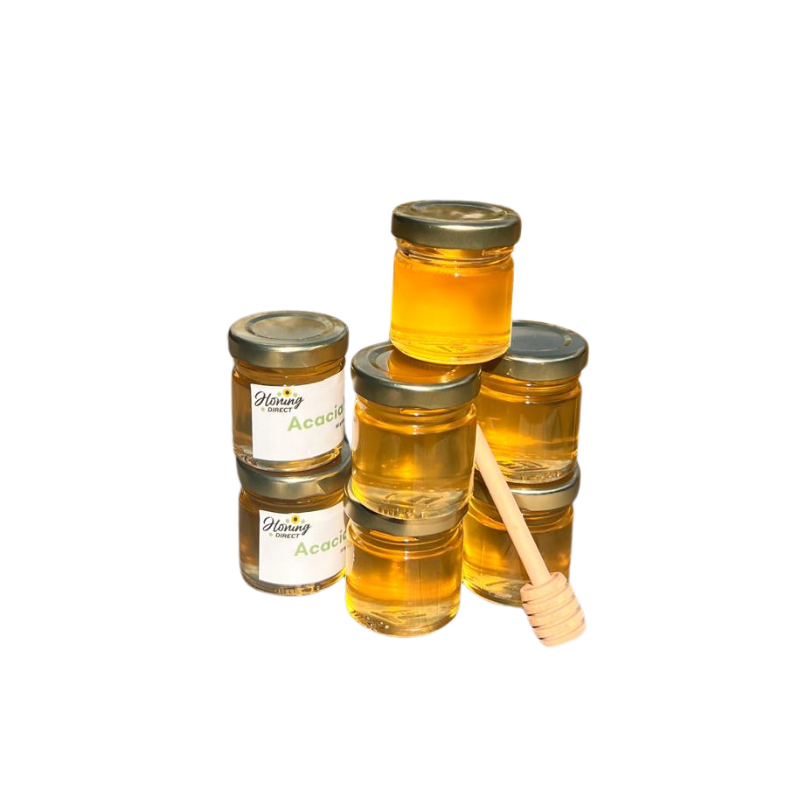 50 mini potjes honing + 50 houten lepeltjes: € 69,99