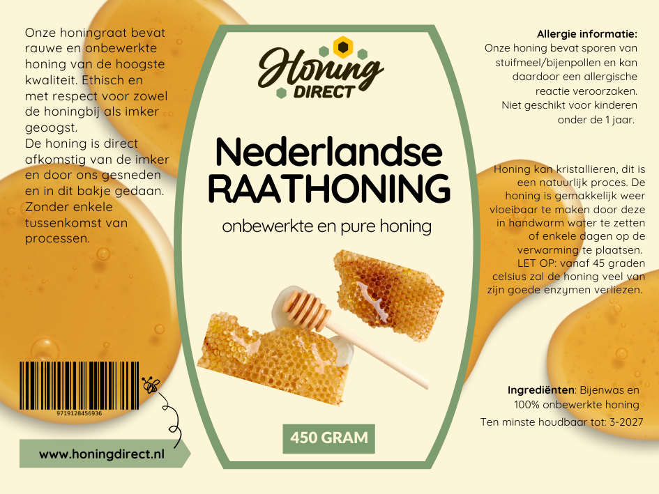 Waarom is deze raathoning zo exclusief? Deze honing wordt slechts eenmaal per jaar geoogst, rechtstreeks uit de Nederlandse bijenkasten in de zomer. De voorraad is daardoor beperkt.